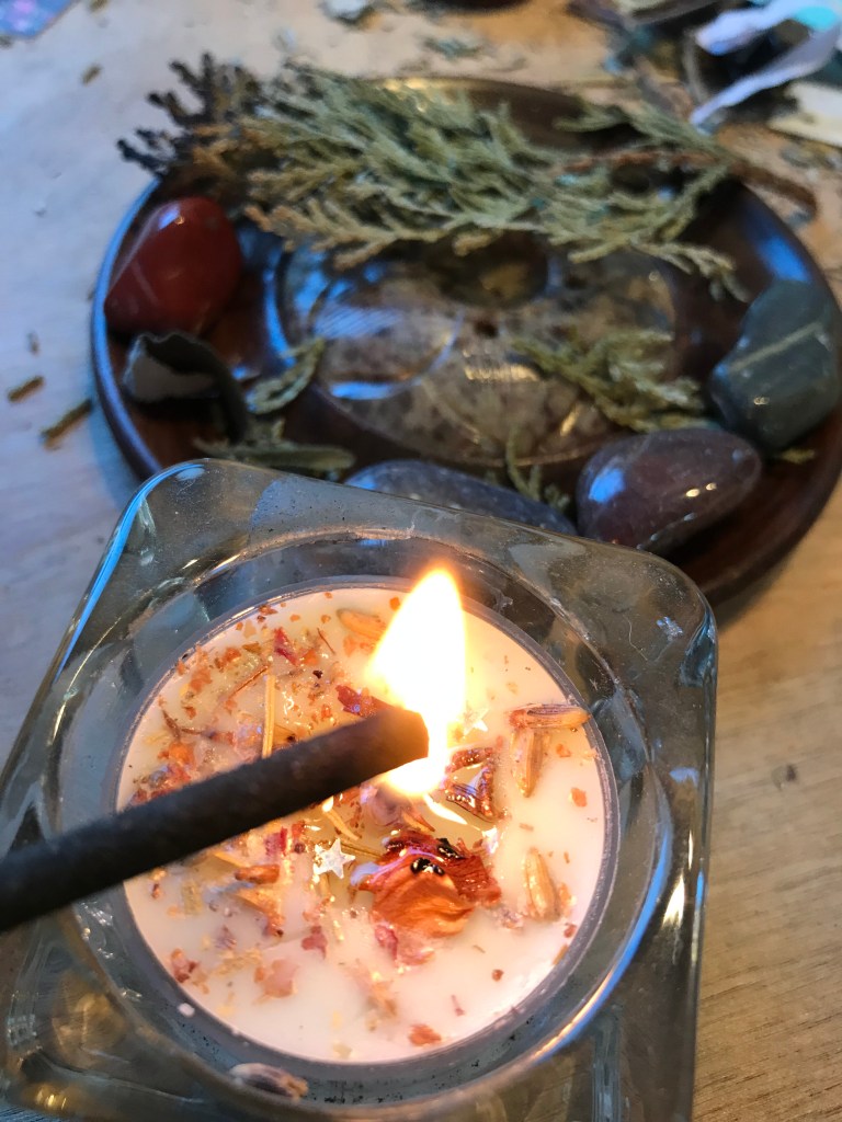 We are in a powerful place of Becoming; what I like to call “Change Between New Moons.” This is an important time for pause, awareness, and creation. It is a special space for taking stock, for releasing to purify, and for inviting new blessings. Our ceremony always provides an opportunity for self-care through the holidays (think spiced yule brews, teas, and treats), as we begin to create a sacred New Year. And though our year may have been a rough one- we can release it all with lots of hot spiritual baths, or in our smudge bowl with extra flame, sage, and smoke!